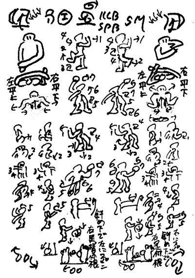 | 左手甲前に腰横 右手甲外に腰横 左股関節縮じめ 上に右股関節後 ろに下に ボール投げのス トレッチ 左踵を下に逆ス ピン左に 手足のストレッチ |