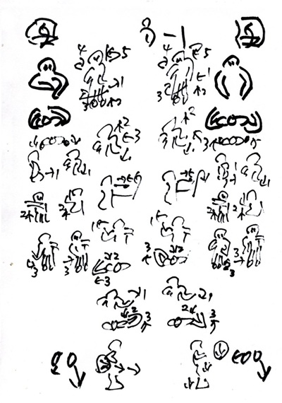左曲りがら右曲りの切り返し 右曲がり 切り返し 左曲がり ![]() 両手を開き45°左回転