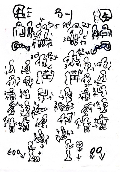 真っ直ぐ方向のストレッチ 左曲りがら右曲りの切り返し 右曲がり 切り返し 左曲がり ![]() 両手を開き45°左回転 |