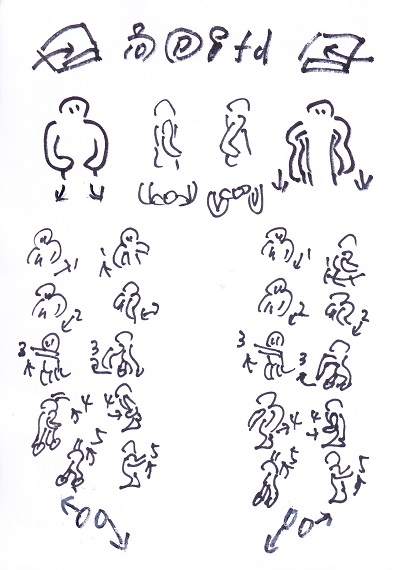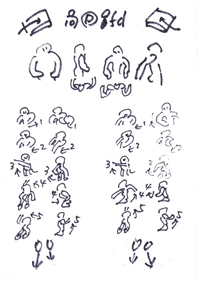 | 左手右に踵上げ 右に脇右に肩を 後ろに脇前に右 に左手首右から 横回転で左上に 右手後ろに肩を 下げ足を下に膝 を右に肩後ろに 脇前に肩を右に 右手首右か ら左上に |