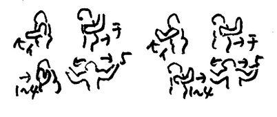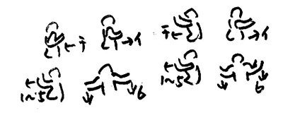 左手甲前に腹前 右手甲外に右横 足前に上体上に 膝下げる 上腕三頭筋の下 を伸ばす 右手平外に下か ら内に 手足のストレッチ |